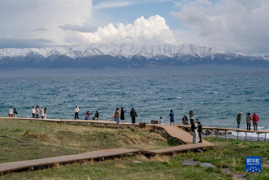 5月21日,游客在新疆賽里木湖景區觀光。