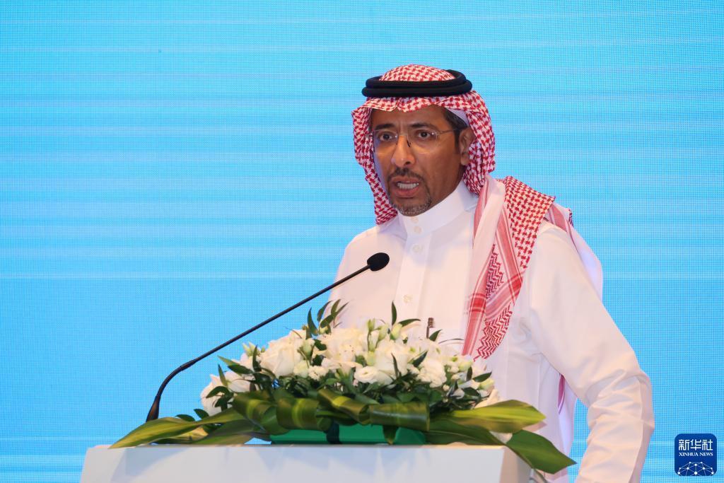 5月21日,在沙特利雅得,沙特工業和礦產資源大臣班達爾·胡拉耶夫在中國-阿拉伯國家博覽會推介會上致辭。
