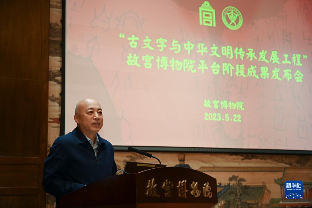 當日,“古文字與中華文明傳承發展工程”故宮博物院平臺階段成果發布會在北京故宮博物院舉行,集中發布了表現故宮甲骨保護與整理的《故宮博物院藏殷墟甲骨文》“馬衡卷”“謝伯殳卷”,體現故宮古文字相關學術研究的《故宮古文字論集(第一輯)》,展現技藝傳承的《心手相追—金石傳拓藝術研究》,表現甲骨藝術的《中國書法》“新見故宮博物院藏殷墟書法研究特輯”專欄等一批成果。