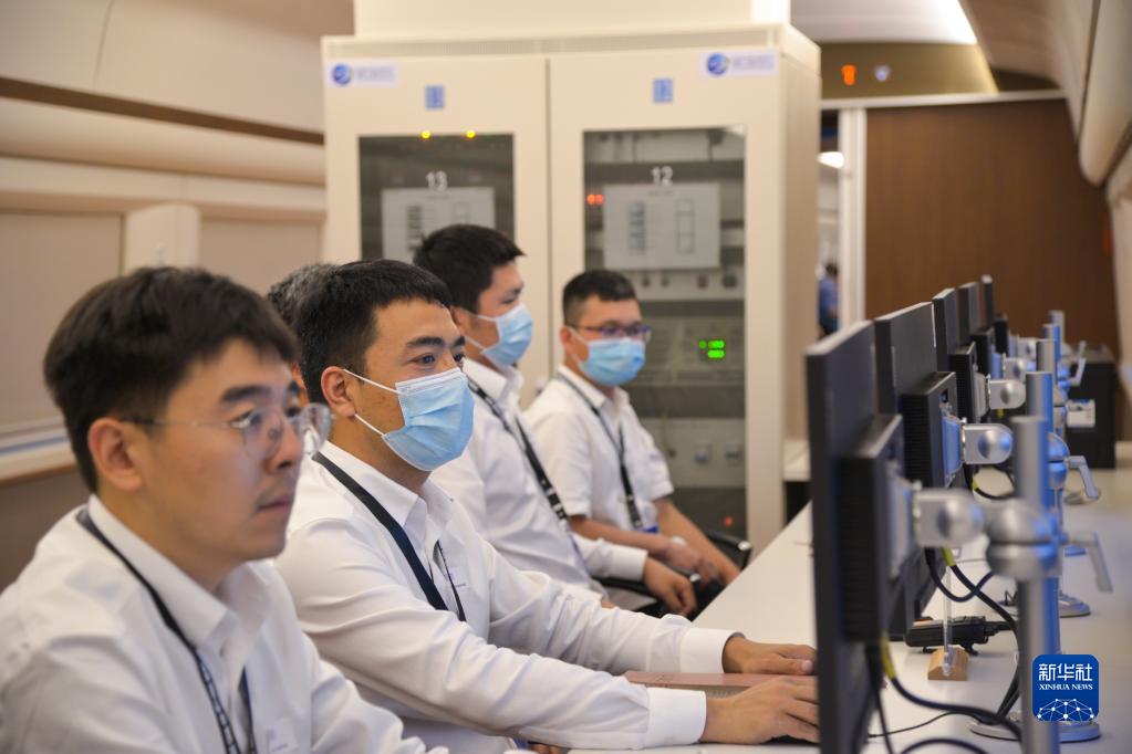 5月22日,在印度尼西亞雅萬高鐵沿線,工程師在進行聯調聯試的雅萬高鐵綜合檢測列車上進行接觸網檢測。