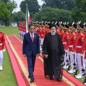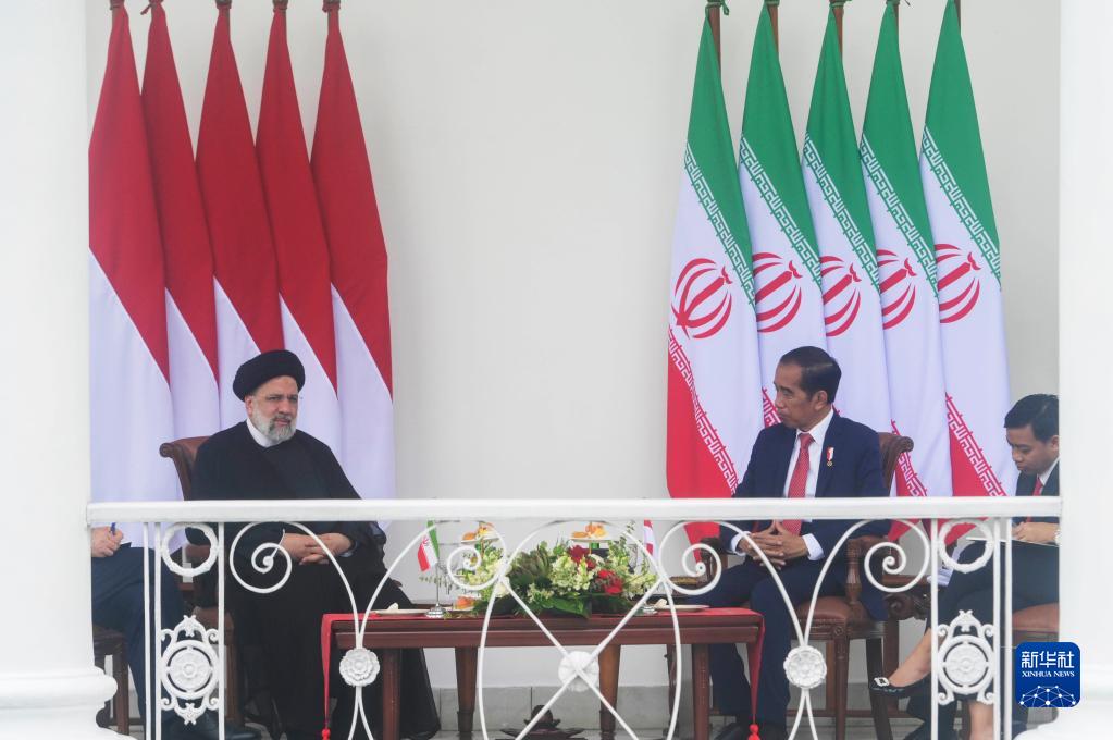 5月23日,在印度尼西亞茂物總統府,印尼總統佐科(右二)和到訪的伊朗總統易卜拉欣·萊希交談。