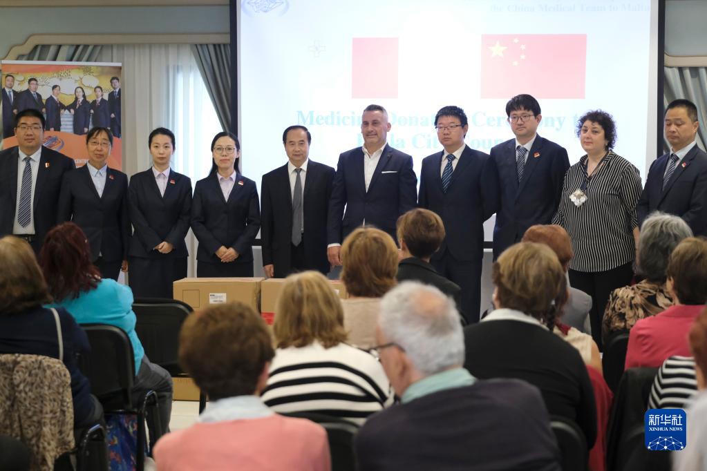 5月22日,在馬耳他保拉市,第18期中國援馬耳他醫療隊向保拉市政府捐贈醫療物資。