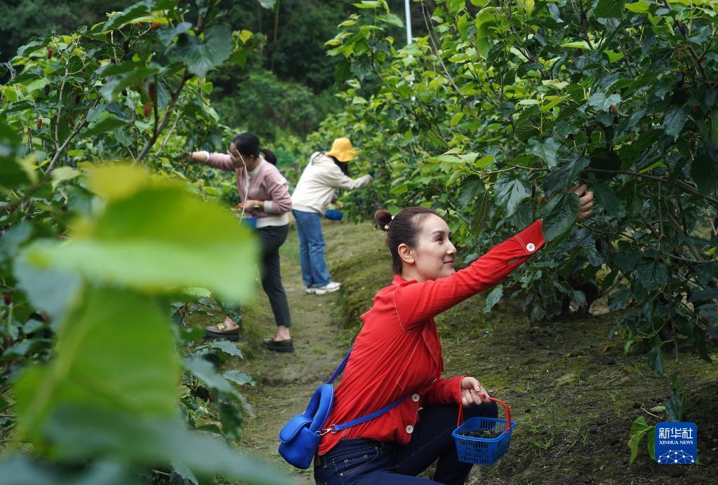 初夏時節,江西省南昌市灣里管理局梅嶺鎮的桑葚種植園里,桑葚掛滿枝頭,當地農民搶抓晴好天氣采摘鮮果。近年來,當地政府積極推進果蔬特色種植和鄉村旅游融合發展,打造以休閑體驗、生態采摘為特色的休閑觀光農業,助力農民增收致富。