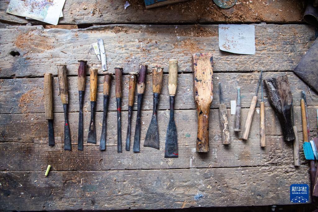 這是5月23日在洞口縣巖山鎮陽家山村拍攝的制作洞口木雕的工具。