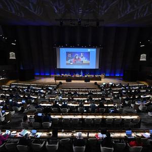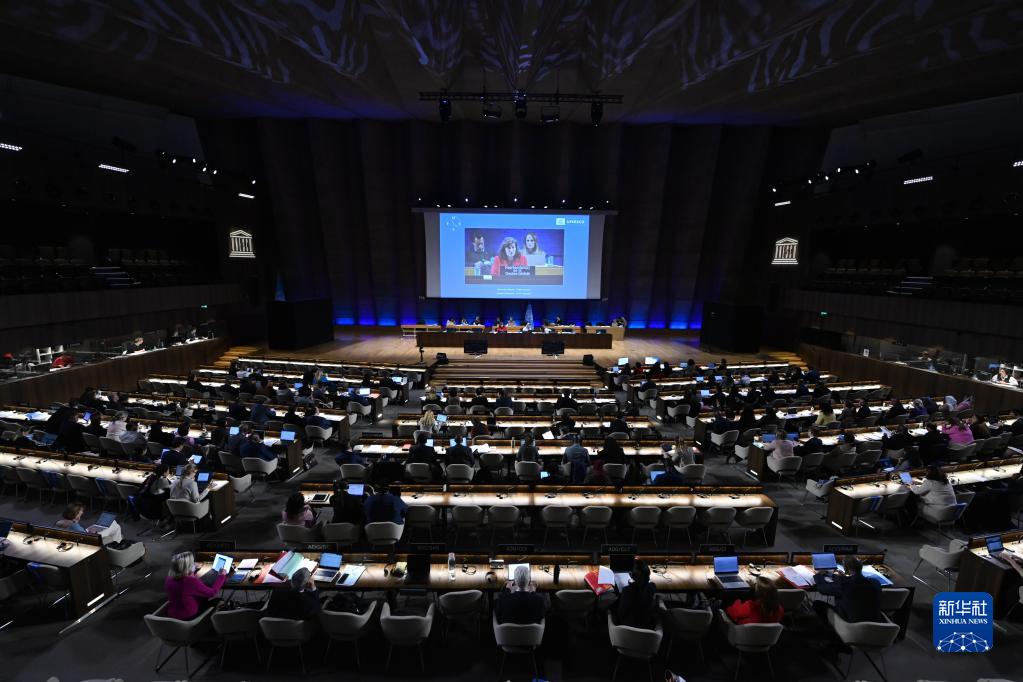 這是5月22日在法國巴黎的聯合國教科文組織總部拍攝的聯合國教科文組織執行局第216屆會議現場。