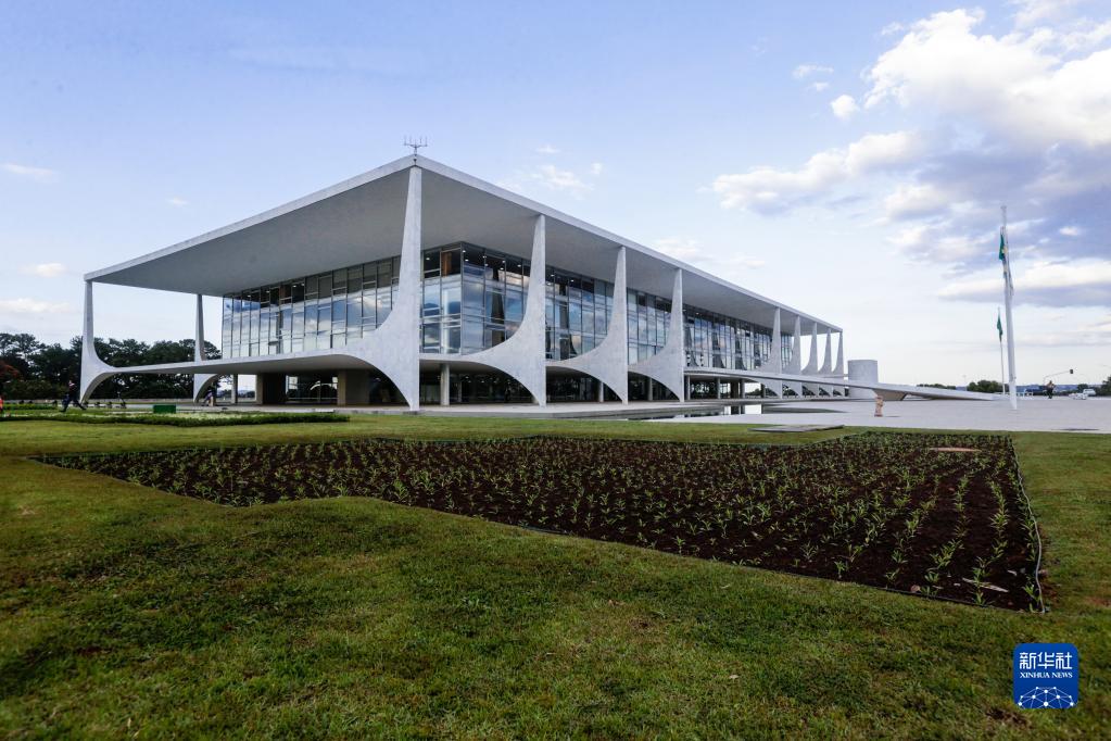 這是5月15日在巴西首都巴西利亞拍攝的總統府普拉納爾托宮。