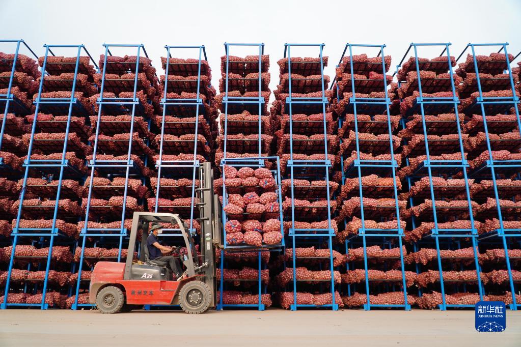 近日,山東省巨野縣農戶種植的大蒜進入收獲期。近年來,巨野縣建立高標準大蒜種植基地35萬畝,建設大蒜倉儲冷庫500余座,大蒜已成為助力當地農民致富的主要特色產業。