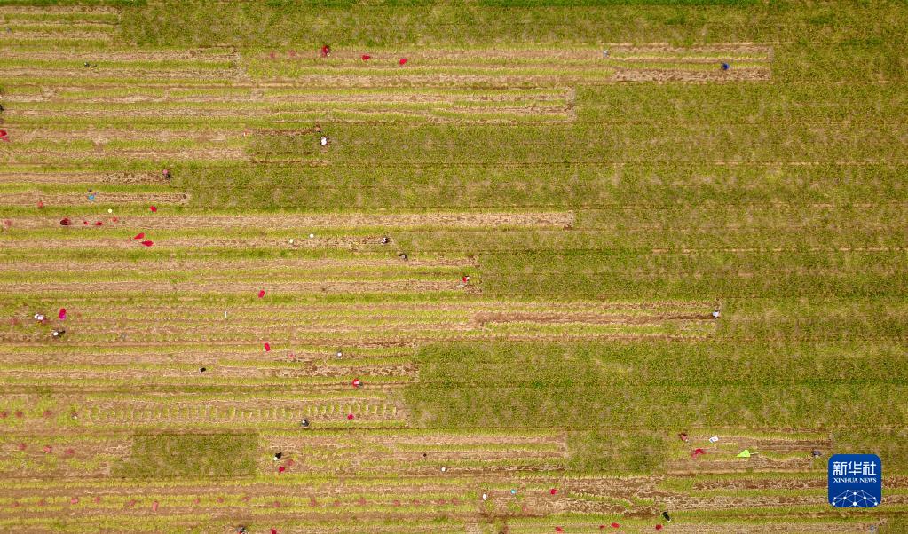 5月23日,在山東省巨野縣田橋鎮,村民在收獲大蒜(無人機照片)。
