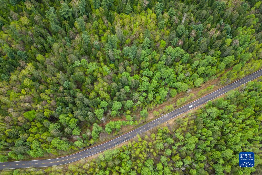 5月21日,園區車輛在五營國家森林公園內穿行(無人機照片)。
