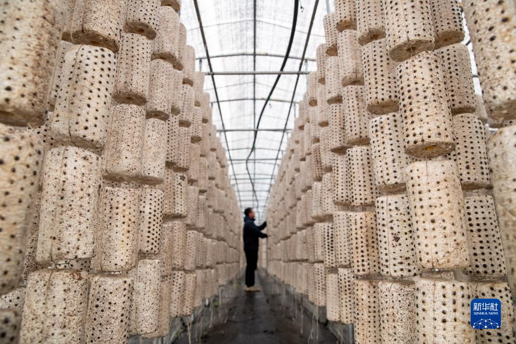 5月20日,在伊春森工集團上甘嶺林業局公司,工作人員在檢查木耳生長情況。