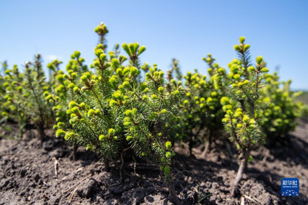 這是5月24日拍攝的伊春森工集團上甘嶺林業局公司溪水林場內栽種的紅松樹苗。