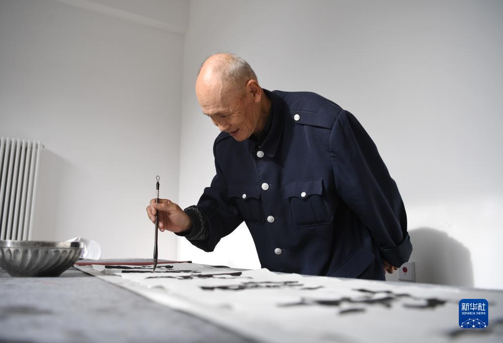河北雄安新區容東片區南文營社區居民在社區養老驛站活動室練習書法(5月23日攝)。