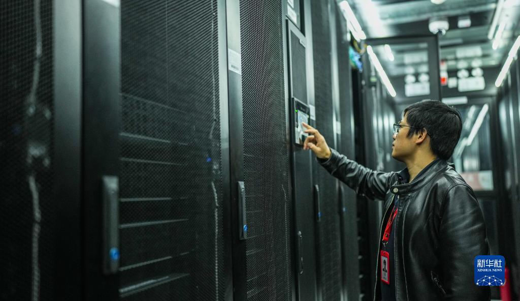 工作人員在中國聯通貴安數據中心微模塊機房進行巡檢(5月23日攝)。