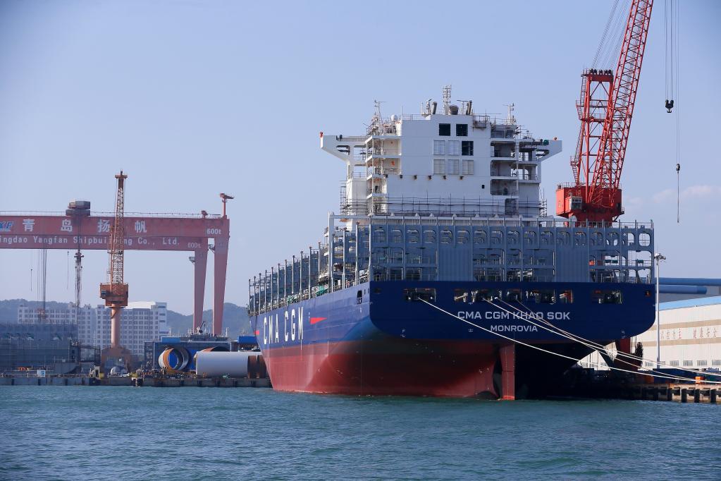 今年以來,山東青島造船廠來自國外的集裝箱船、散貨船等訂單飽滿,生產訂單已排至2025年。