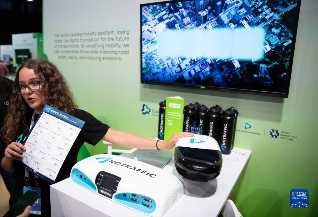 這是5月23日在以色列特拉維夫舉行的第11屆以色列智能交通展上拍攝的一款智能交通系統。