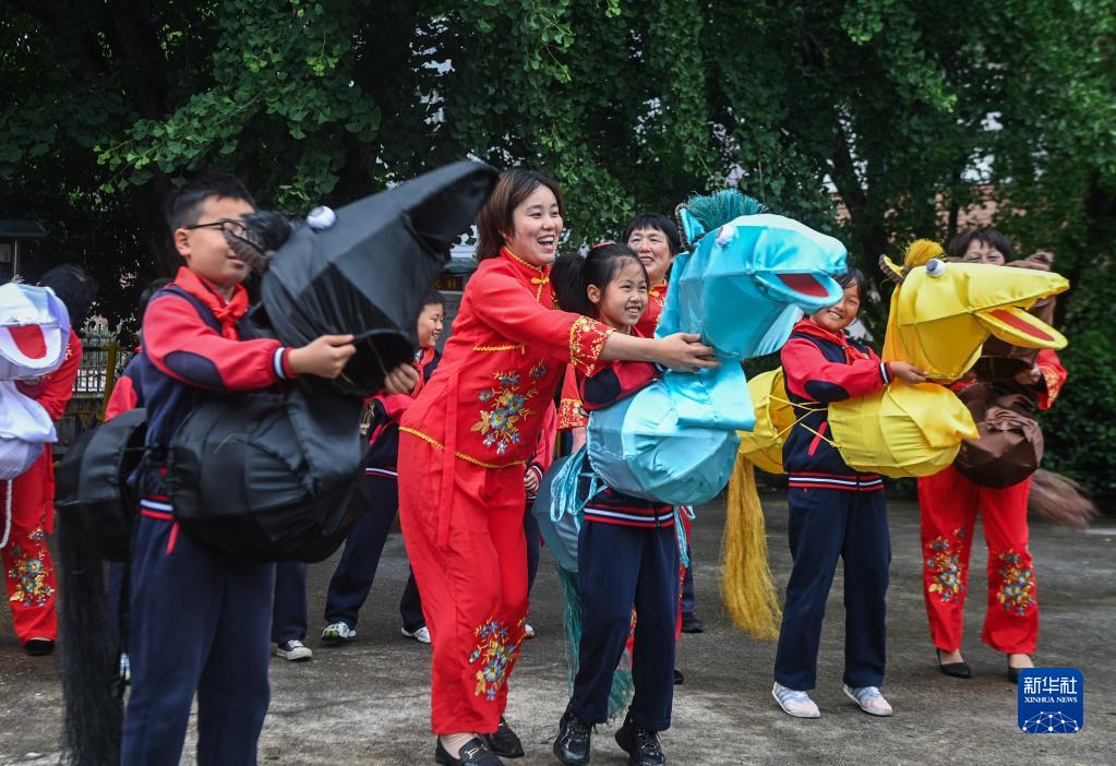 5月24日,長興縣煤山鎮中心小學的學生在新民村學習新民馬燈舞蹈。