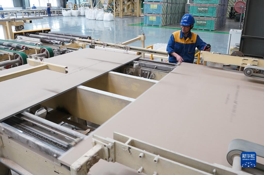 5月24日,在下蜀高新技術產業園內的一家建材企業,工人在石膏板生產線忙碌。