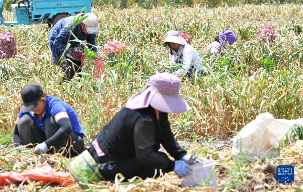 近日,河南省鄭州市中牟縣的大蒜迎來收獲季。據了解,今年中牟縣大蒜種植面積24.7萬畝,將于月底結束收獲。