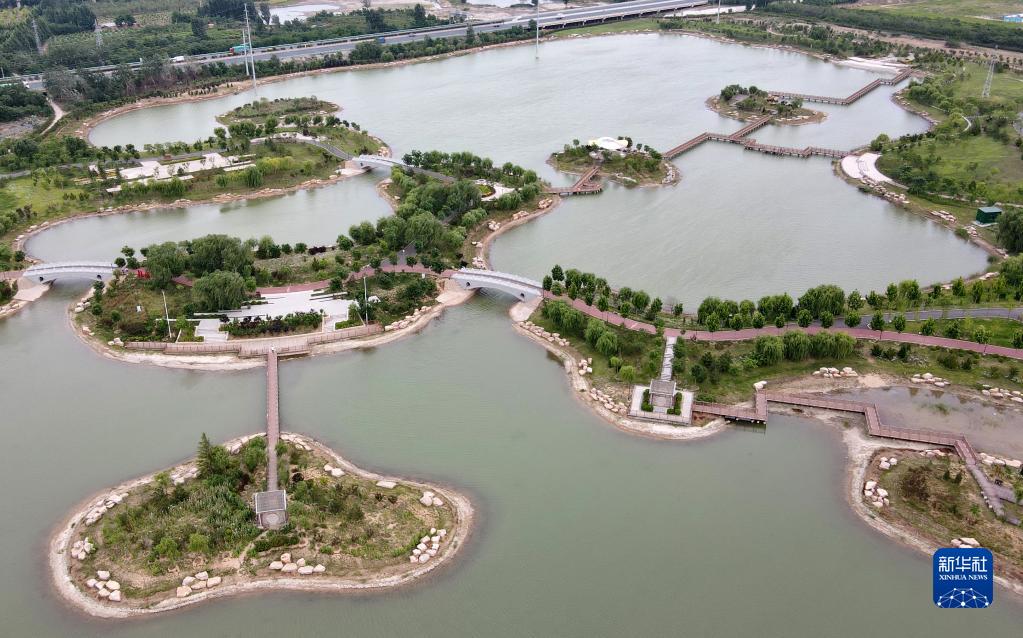 這是河北省沙河市荷花湖公園(5月24日攝,無人機照片)。