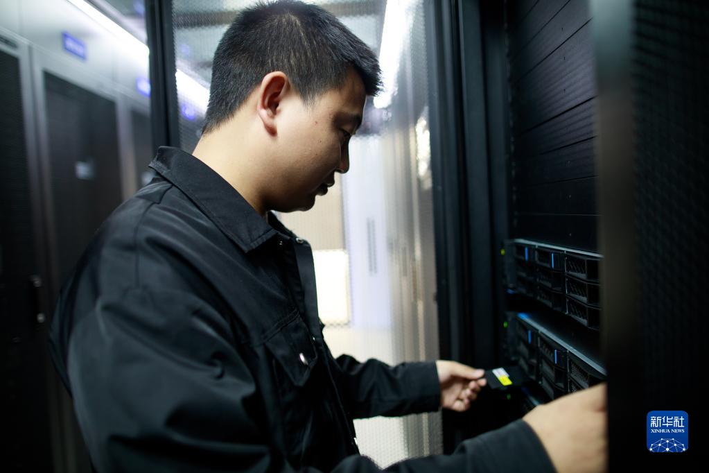 5月23日,工作人員在貴州大學省部共建公共大數據國家重點實驗室算力中心機房檢查設備。
