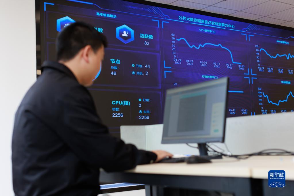 5月23日,工作人員在貴州大學省部共建公共大數據國家重點實驗室算力中心進行科研。