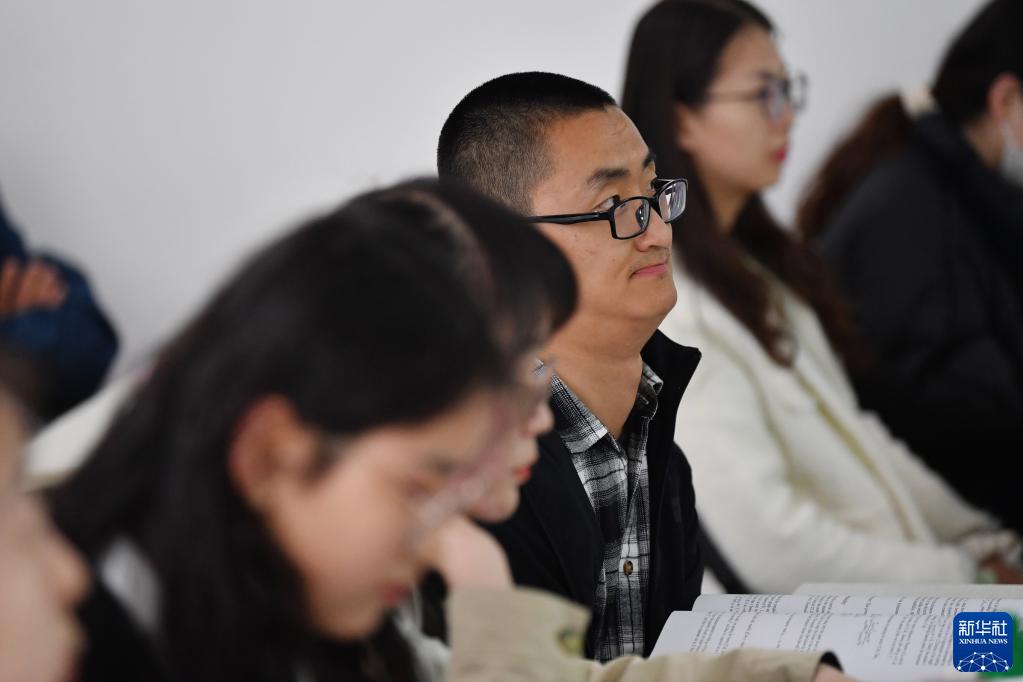 謝炎廷和同學在蘭州大學的教室里上課(5月10日攝)。新華社記者 陳斌 攝