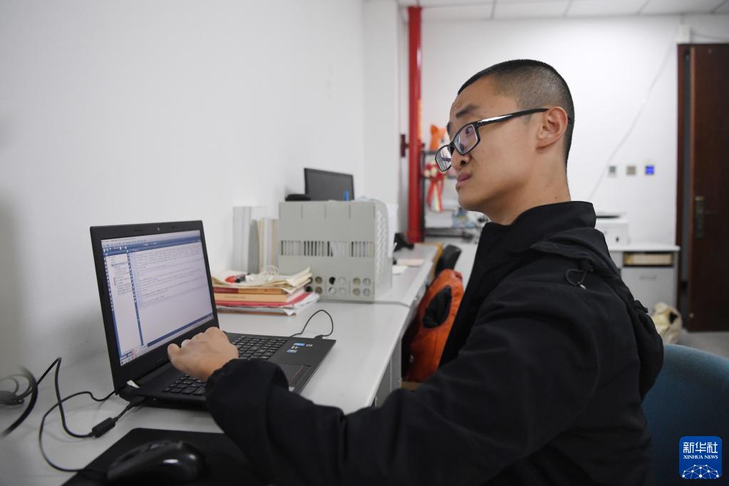謝炎廷在蘭州大學理工樓的自習室里修改自己的“畢業論文”(5月10日攝)。新華社記者 陳斌 攝