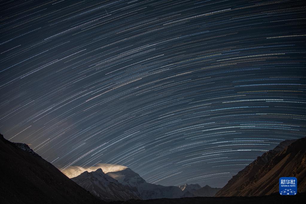 這是5月10日凌晨在珠峰大本營拍攝的星軌(合成照片)。