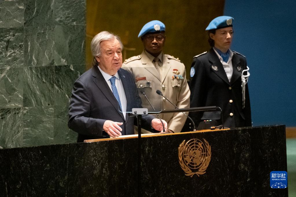 5月25日,在位于紐約的聯合國總部,聯合國秘書長古特雷斯(左一)在活動上致辭。