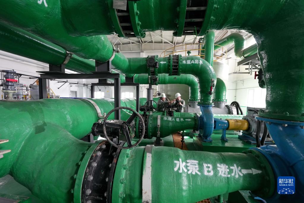 5月25日,工人在唐山市海港經濟開發區海水淡化項目投產的淡水生產車間工作。