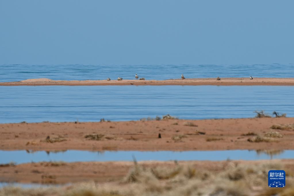 水鳥在位于新疆東昆侖庫木庫里盆地的阿雅克庫木湖畔休憩(5月23日攝)。
