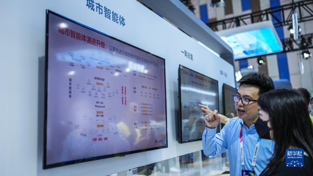 5月26日,參觀者在數博會展館內參觀了解城市智能體項目。