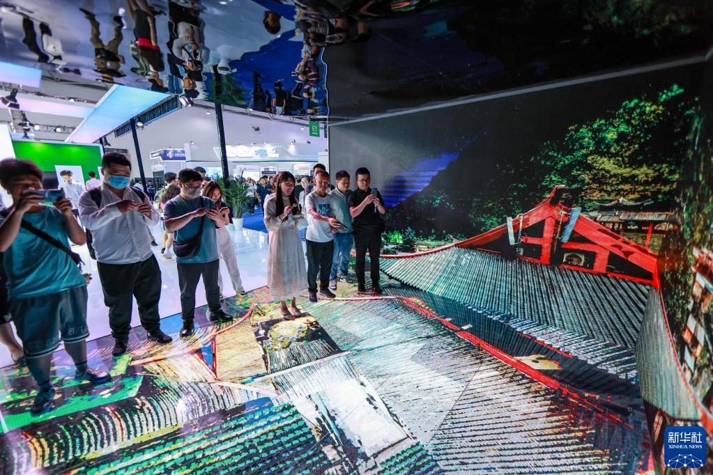 5月26日,參觀者在數博會現場觀看使用云計算技術制作的視頻。