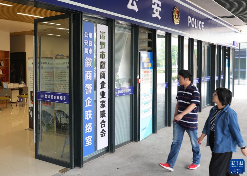 5月26日拍攝的諸暨市公安局徽商警企聯絡室。該聯絡室成立于2020年,由徽商代表組成,目前共有210名“徽商義警”,為在諸暨經商務工的7.5萬名同鄉提供經濟、治安類調解服務。