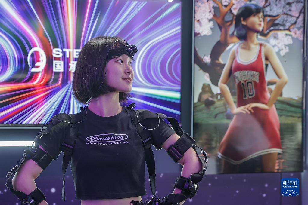 5月26日,模特在中關村國家自主創新示范區展示中心展示動作捕捉設備。
