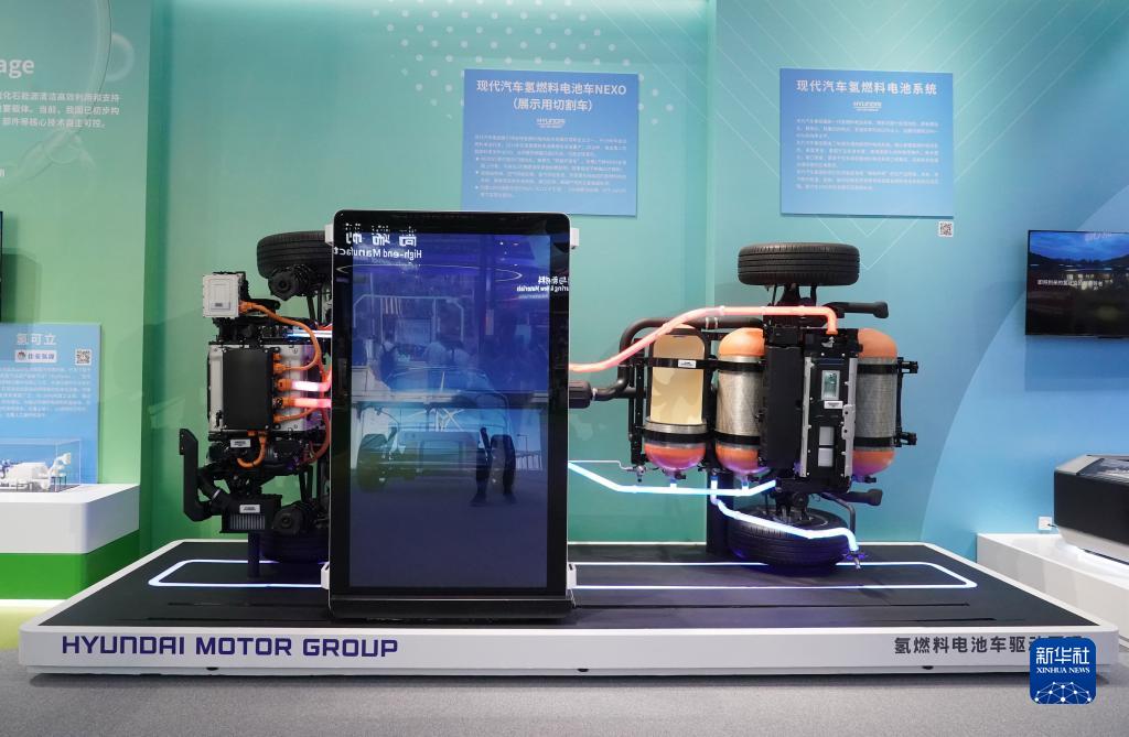 5月26日在中關村國家自主創新示范區展示中心拍攝的現代汽車氫燃料電池車NEXO(展示用切割車)。