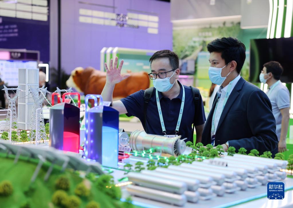 5月26日,觀眾在在中關村國家自主創新示范區展示中心了解100MW先進壓縮空氣儲能技術。