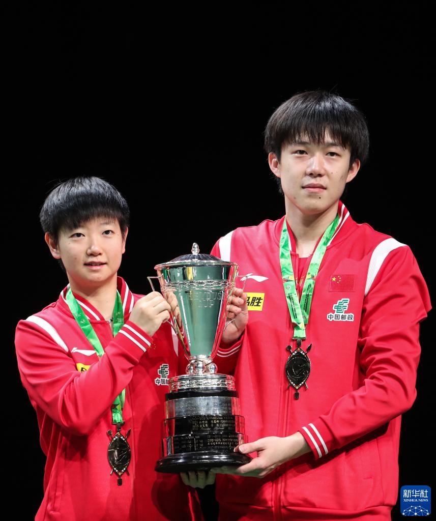 當日,2023年世界乒乓球錦標賽混合雙打頒獎儀式在南非德班舉行。中國組合王楚欽/孫穎莎以3比0戰勝日本組合張本智和/早田希娜,奪得冠軍。