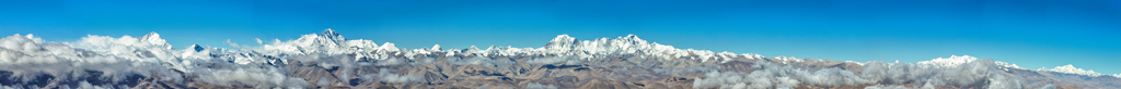 這是喜馬拉雅山脈五座海拔8000米以上的高峰。從左到右依次為:馬卡魯峰、洛子峰、珠穆朗瑪峰、卓奧友峰、希夏邦馬峰(5月26日攝,拼接照片)。