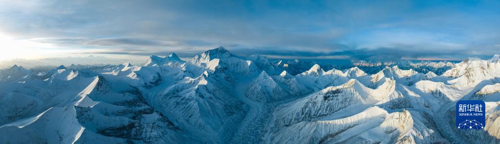 這是在海拔8000米左右高空拍攝的珠穆朗瑪峰和喜馬拉雅山脈群山(5月23日攝,無人機照片)。