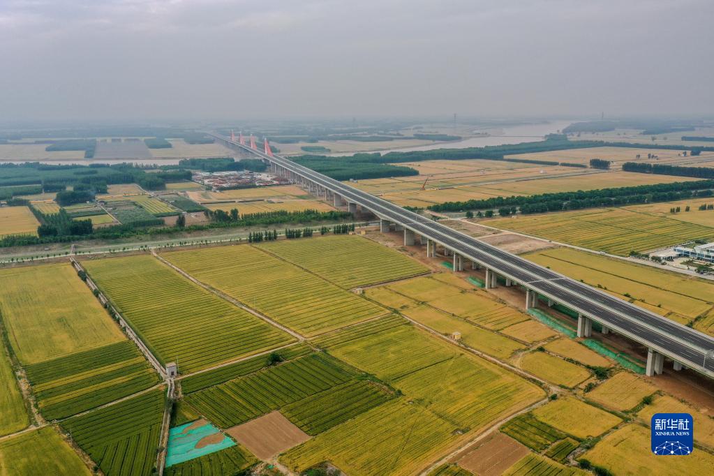 這是5月26日拍攝的孝里街道黃河灘區遷建復墾土地種植的小麥(無人機照片)。