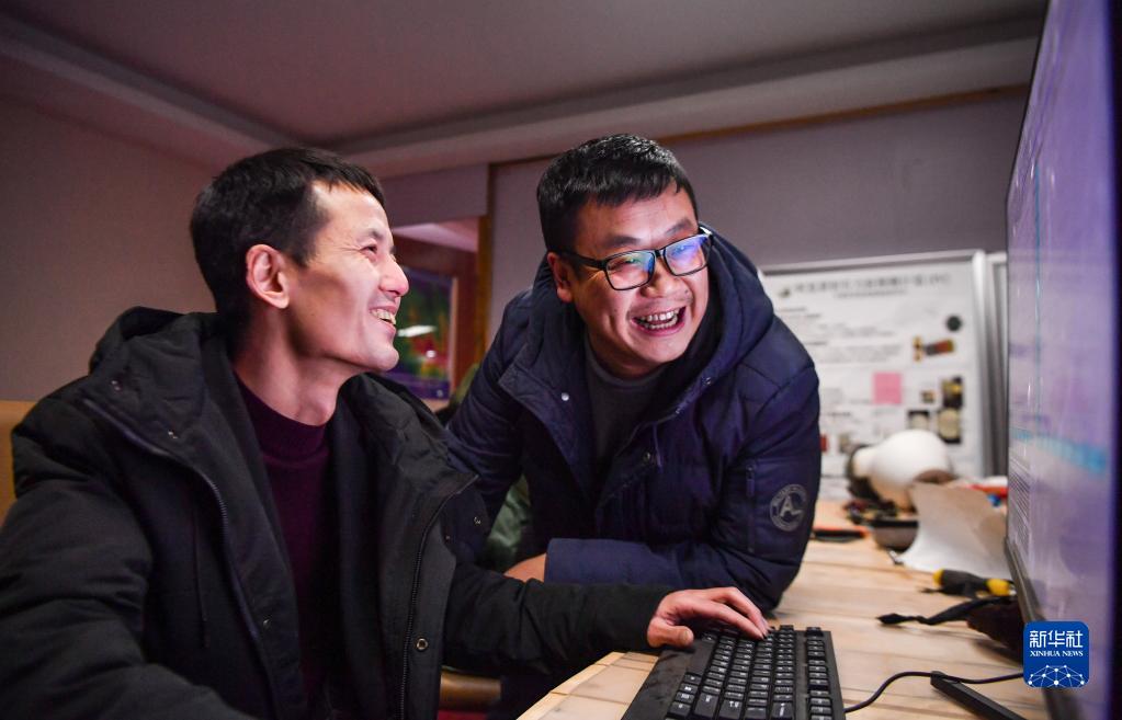 尤顯龍(左)和同事唐鵬在討論觀測到的數據(5月23日攝)。