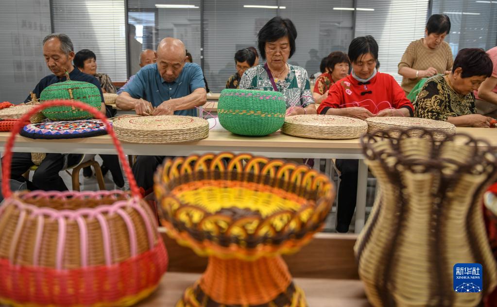 5月26日,遷居村民在孝里街道社區黨群服務中心內集中學習編織技藝。