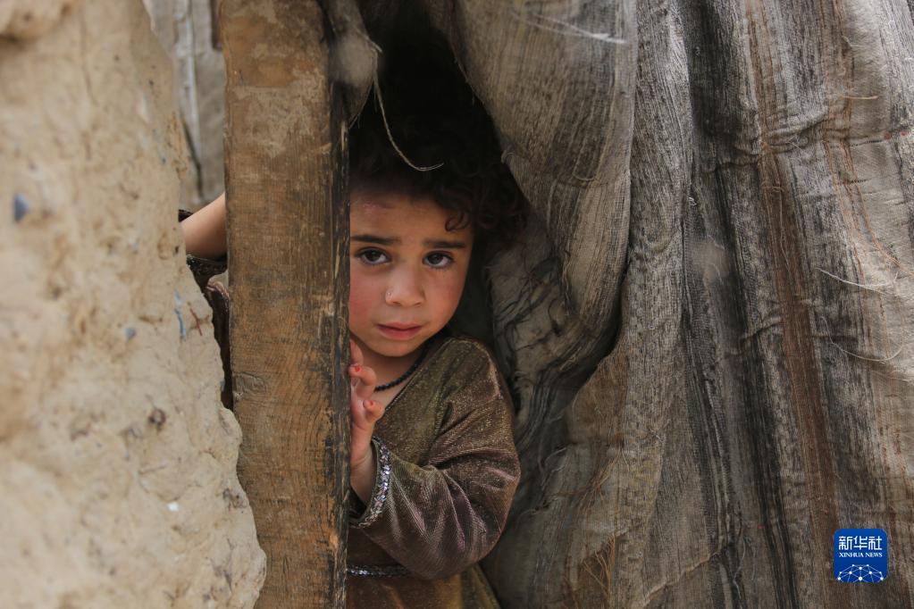這是5月23日在阿富汗首都喀布爾拍攝的一處流離失所者營地內的兒童。