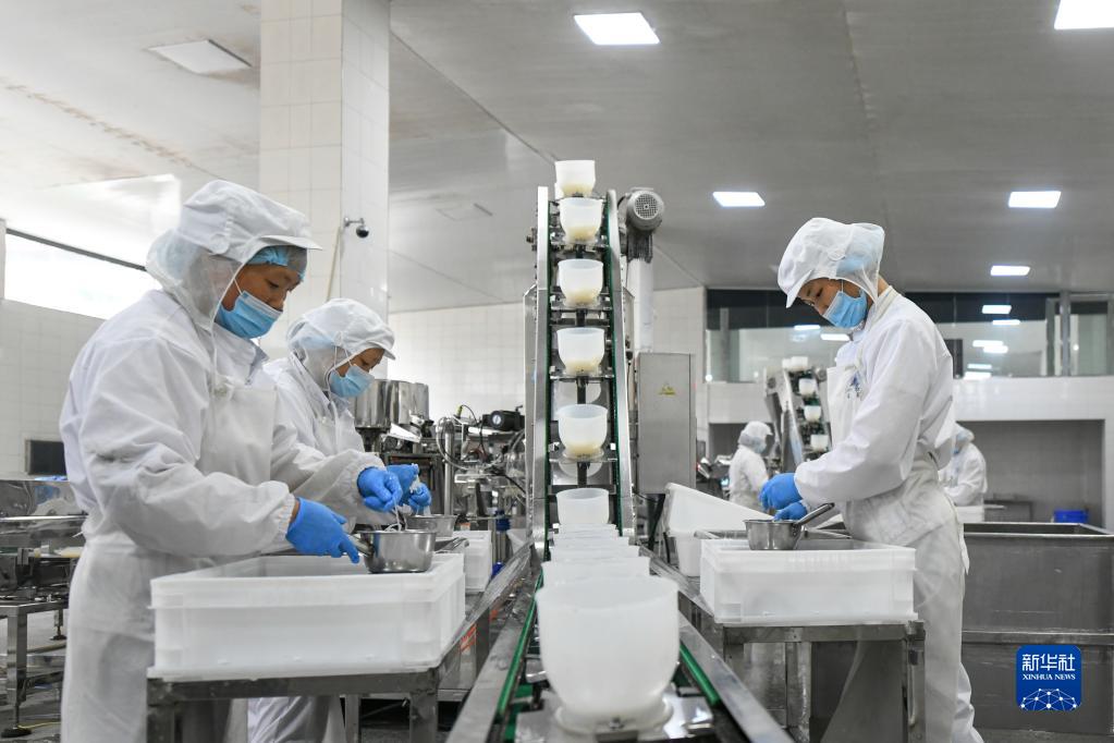 5月26日,在沐川縣一處魔芋生產車間,工人在分裝魔芋絲。