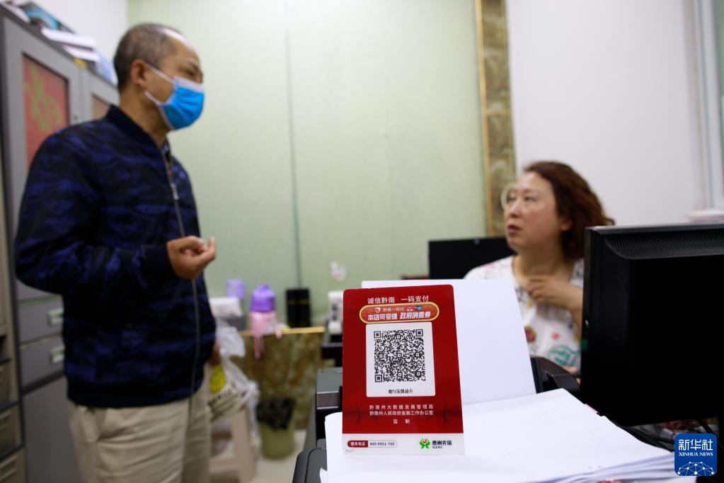 5月23日,顧客在黔南州一超市內使用“數字底座”黔南一碼付辦理團購業務。