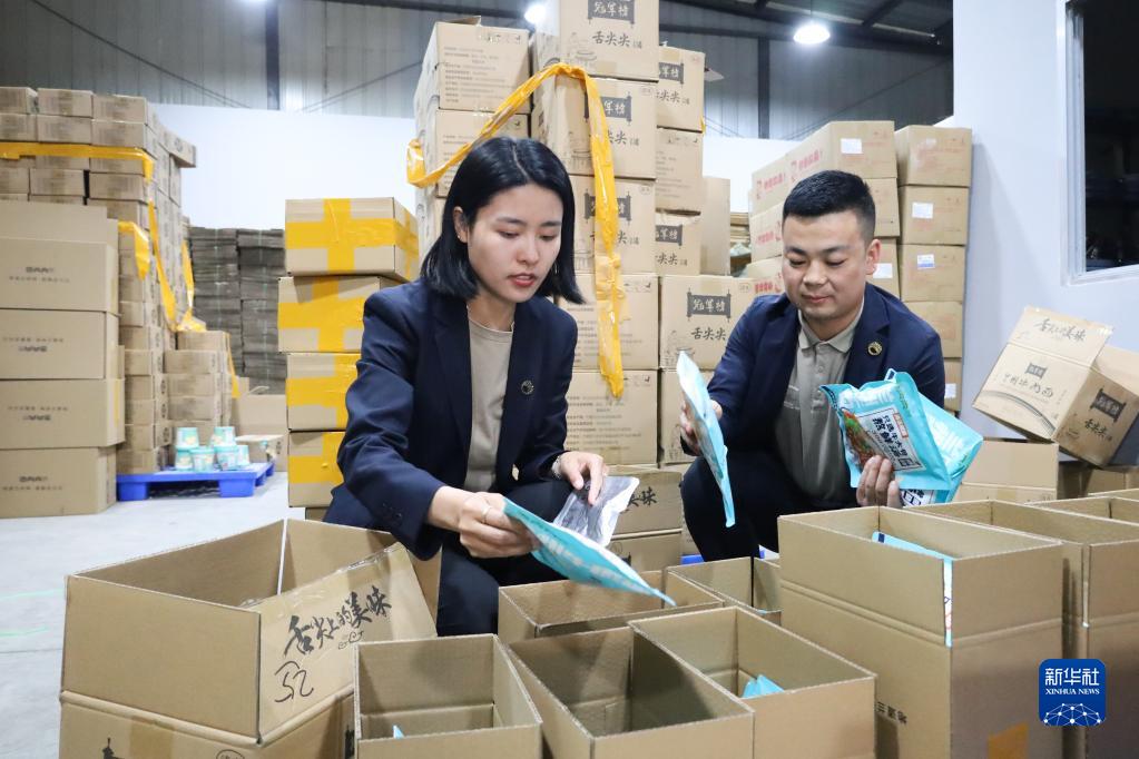 5月26日,在位于蘭州市的舌尖尖居家牛肉面倉儲中心,工作人員打包居家食用牛肉面產品準備發貨。