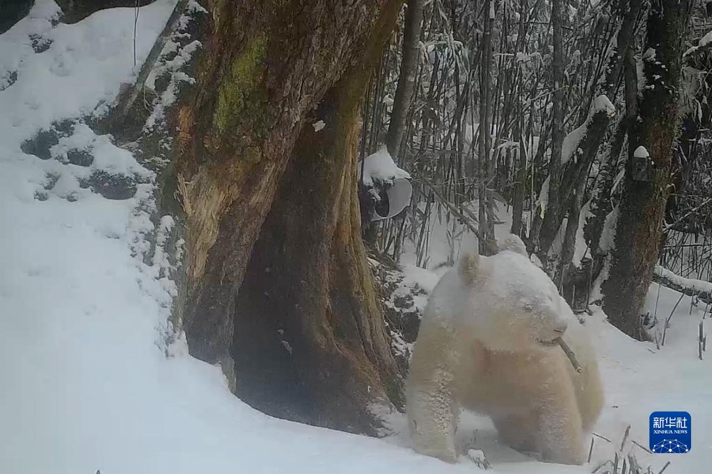紅外相機拍攝到的白色大熊貓活動畫面。