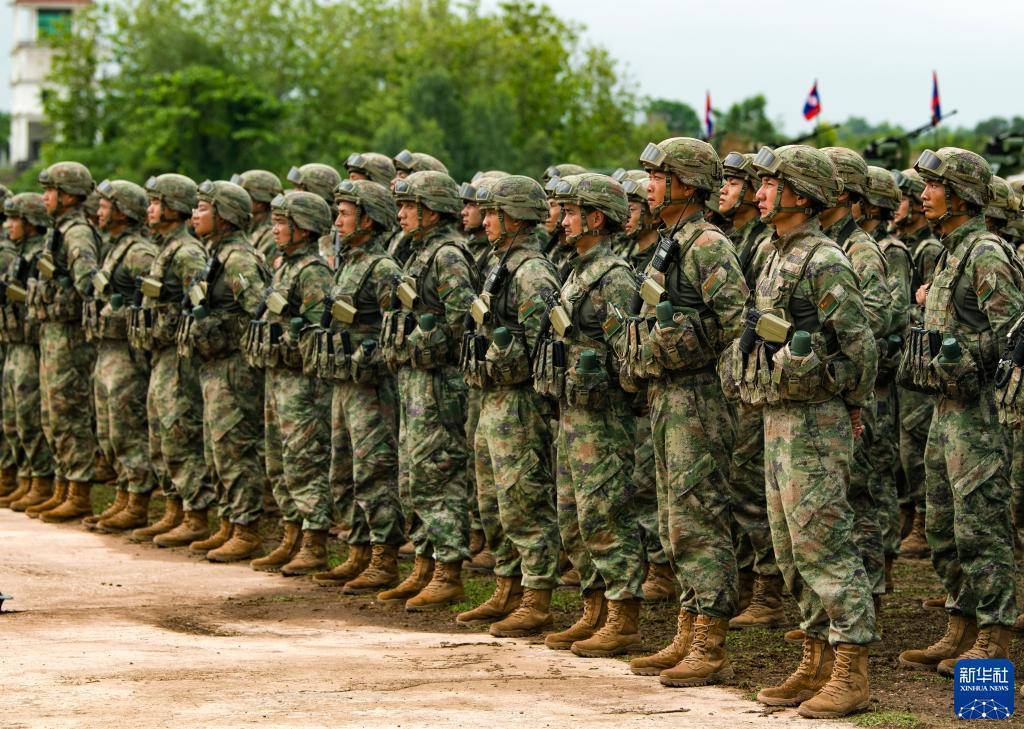 5月26日,中方參演官兵在老撾人民軍庫瑪丹學院訓練場參加中老“友誼盾牌-2023”聯演結束儀式。