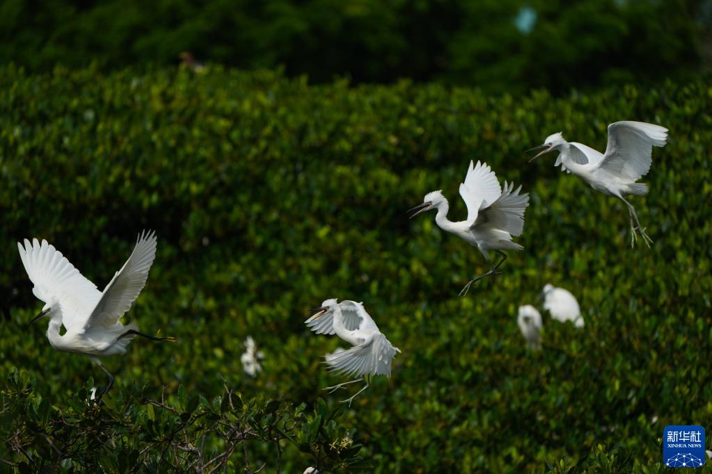 這是在湛江市霞山區觀海長廊一帶的紅樹林里棲息的鳥類(5月25日攝)。